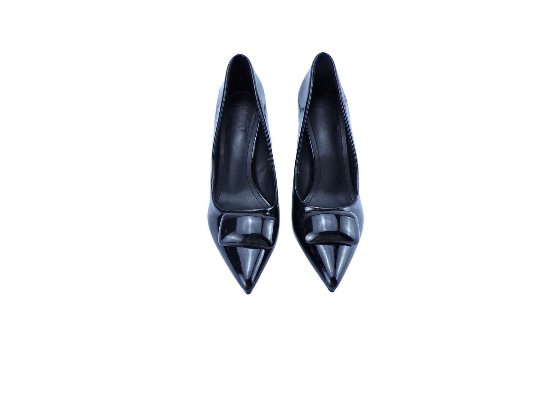 Iris, il mocassino realizzato in eco pelle con effetto vernice, questo mocassino è dotato di un morsetto quadrato in strass che aggiunge un tocco di brillantezza. Con una suola alta di 35 mm, ti garantisce comfort e stile tutto il giorno.